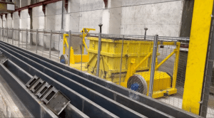 Het systeem meet waar de stortkraan zich bevindt en presenteert een volle kubel aan de stortkraan. De kraan plaatst een lege kubel op de wagen om vervolgens de volle kubel op te pakken voor verwerking. De wagen rijdt vervolgens op hoge snelheid (11km/uur) terug naar de menger om de lege kubel te vullen.